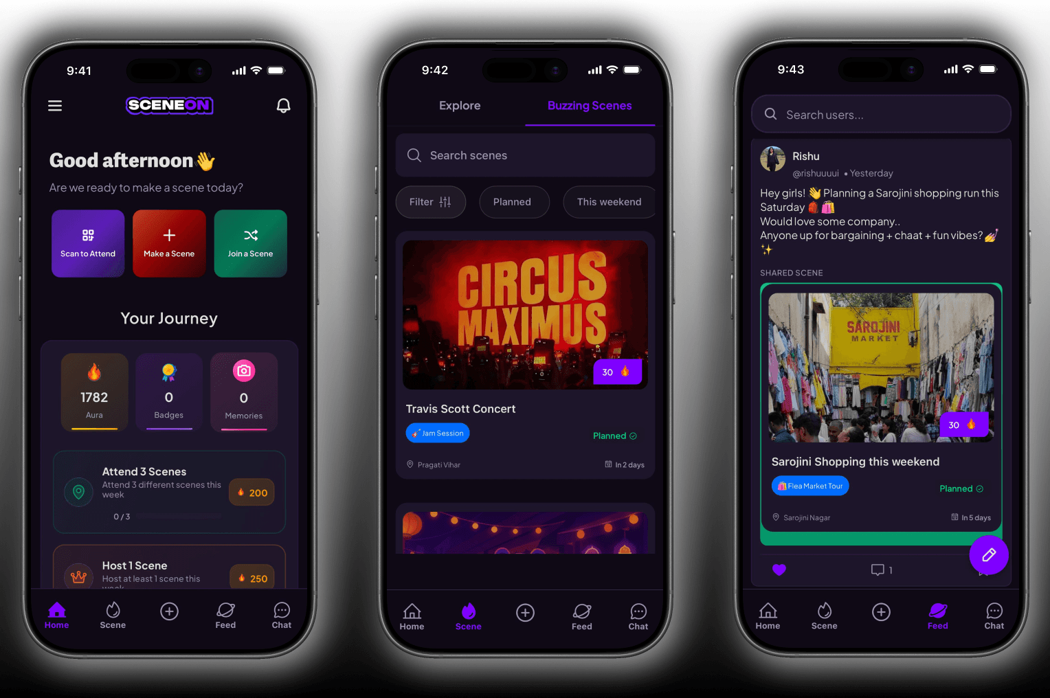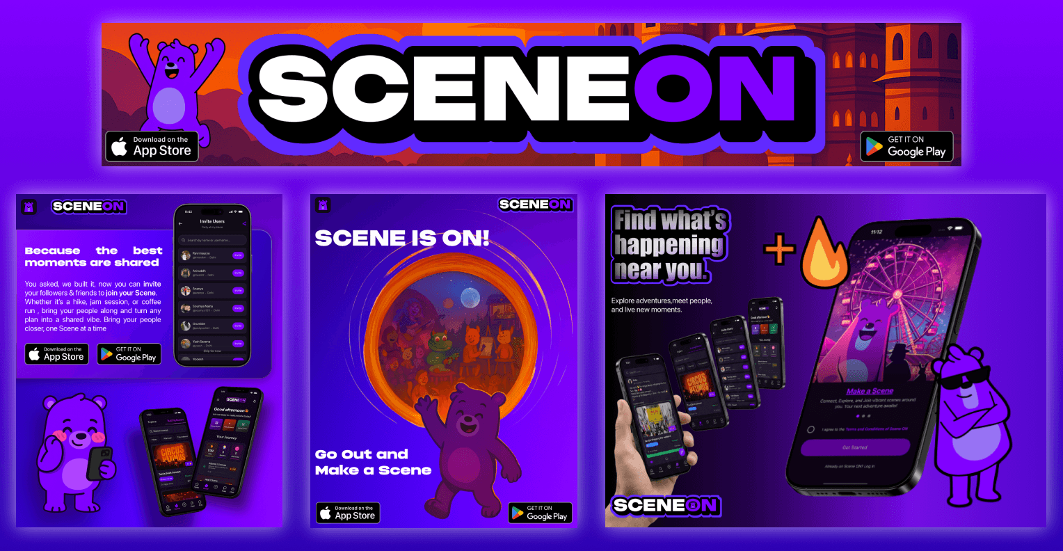 SCENEON is a social discovery platform focused on enabling people to find, host, and participate in real-world experiences. I worked as the Product Designer, owning both core app experience and growth touchpoints, ensuring a cohesive product journey from first discovery to post-event engagement.